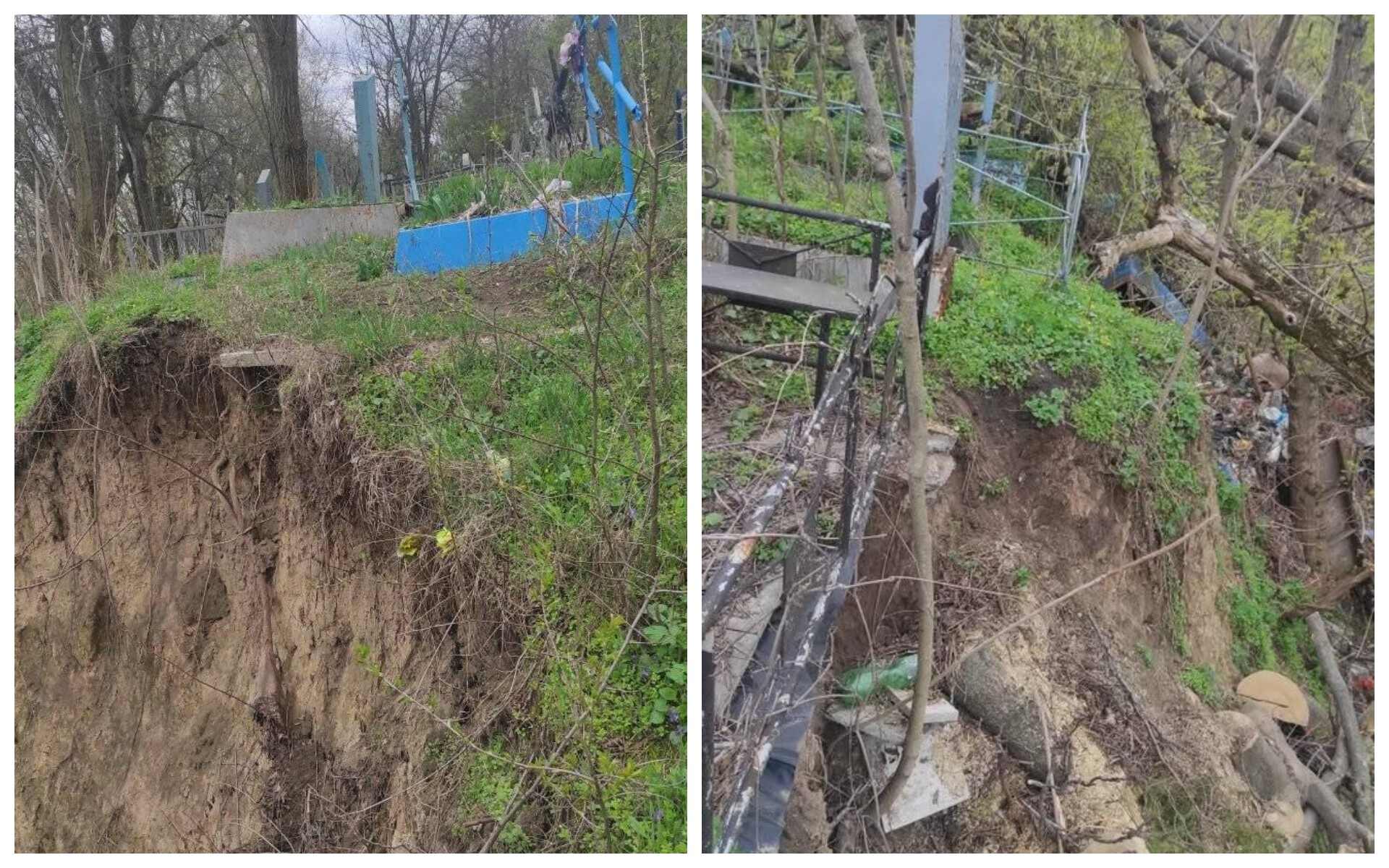 Цвинтар розташований на схилі балки, яка поступово осипається. Кирило Габор опублікував в своїх соцмережаї фото, на яких видно, як частина могил буквально нависає над урвищем.