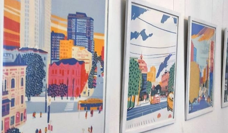 На виставці представлено близько 30 картин-ілюстрацій, а також серія листівок, на яких зображені міські пейзажі в яскравих та ніжних тонах.
